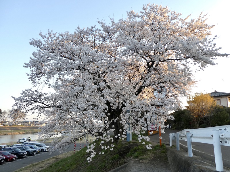 令和2年(2020)は、雪が降らず超暖冬で、過去2番目の速さで開花しました。新型コロナウイルスの影響で桜まつり中止・観桜自粛、河川敷や韮神堰、河川敷臨時駐車場を閉鎖しました。