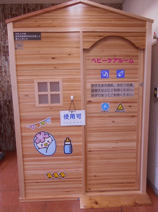 また、『「授乳室」という表示だと、男性は利用しにくい』という意見をいただき、『ベビーケアルーム』という表示にしました。どうぞご利用ください。