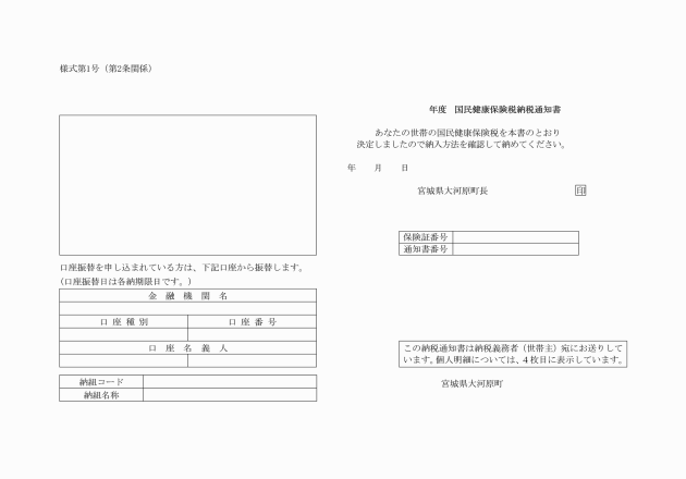 第1条 この規則は、大河原町国民健康保険税条例(昭和34年条例第9号。以下「条例」という。)の施行に関し必要な事項を定めるものとする。