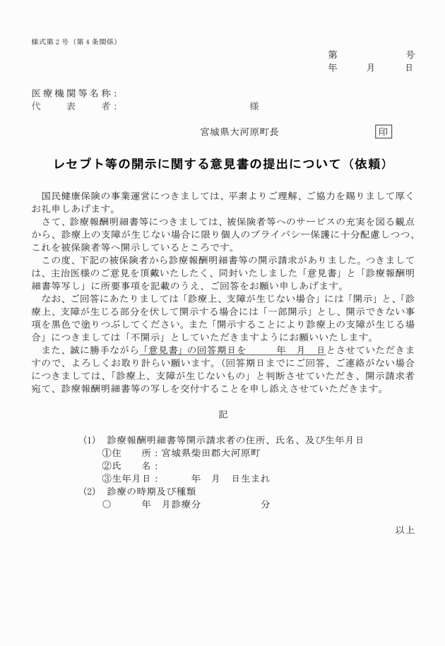 ○大河原町診療報酬明細書等の開示に係る事務取扱要領